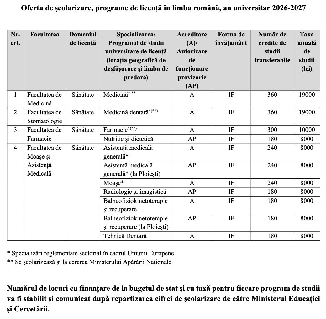 Locuri Taxă - 6000 lei / an din care pentru a vă înscrie în primul an trebuie să achitați 3000 de lei