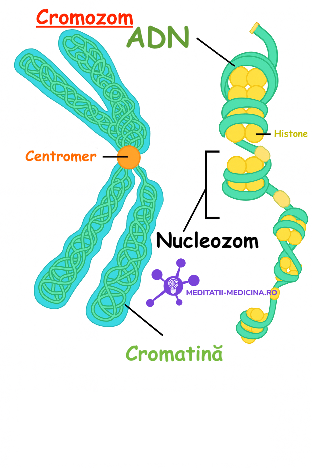 Oferă un cadru de sprijin pentru ADN și formează nucleozomi.