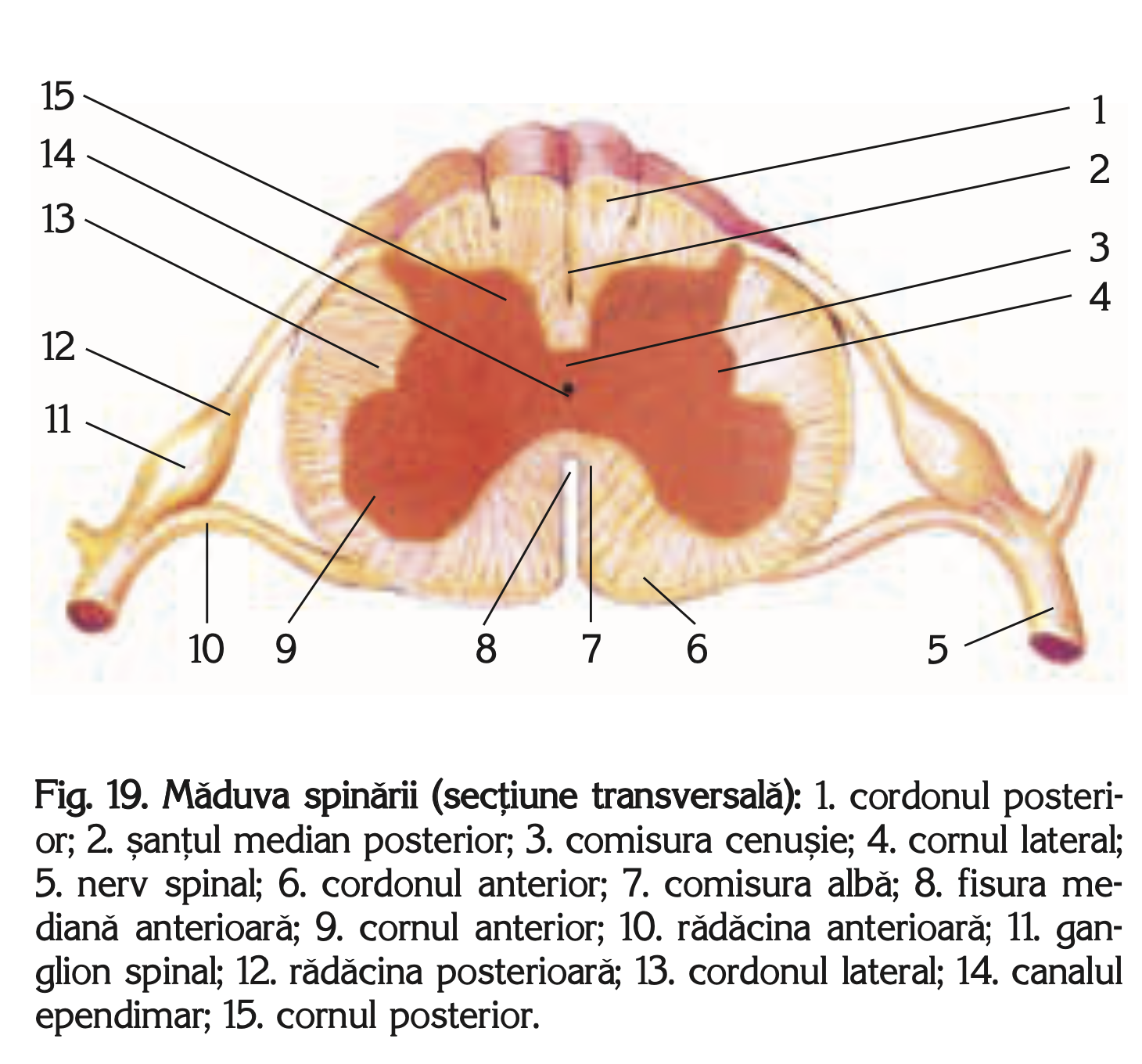 Care este dispunerea substanțelor albă și cenușie în măduva spinării?