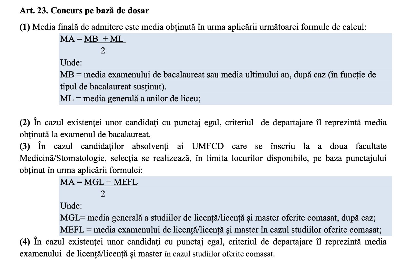 Extras din Regulament privind concursul de admitere la studiile universitare de licență în