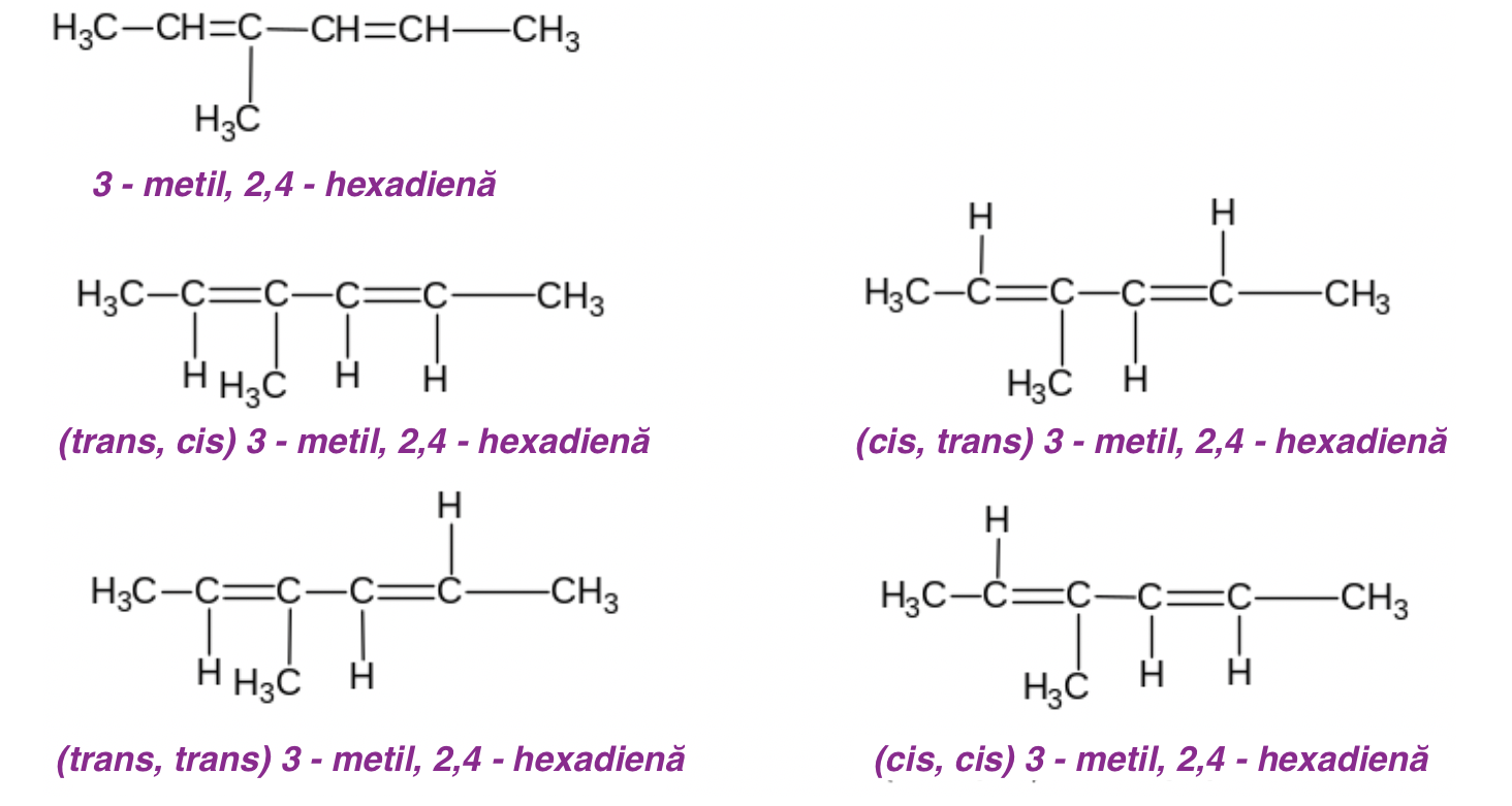 Care sunt izomerii geometrici ai 3-metil, 2,4-hexadienei?