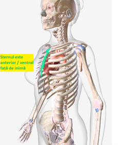 Sternul este situat anterior față de inimă.