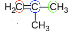 Ce tip de hibridizare au atomii de carbon roșu, albastru, verde?